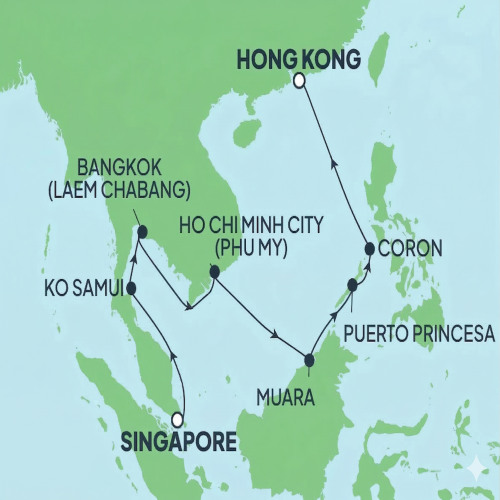 În Thailanda, vom ajunge în Laem Chabang, principalul port maritim al țării, poarta către cultura bogată și templele impresionante ale regatului thailandez. Aventura continuă în Ko Samui, una dintre cele mai apreciate insule tropicale, unde plajele cu nisip fin, palmierii și apele turcoaz creează cadrul perfect pentru relaxare.