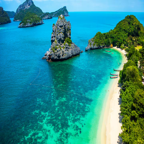 Această insulă tropicală te întâmpină cu plaje cu nisip fin, ape turcoaz și peisaje spectaculoase cu palmieri. Poți vizita Templul Big Buddha, grădinile de nuci de cocos sau cascadele pitorești din interiorul insulei. Atmosfera relaxantă și restaurantele locale cu fructe de mare proaspete fac din Ko Samui o destinație ideală pentru relaxare și explorare în ritm thailandez.