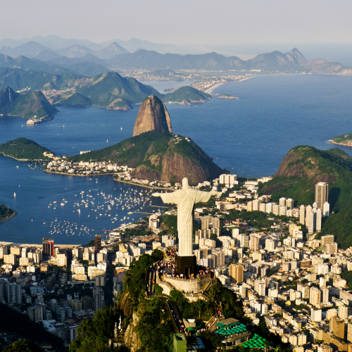 Vizitam Statuia Mantuitorului Iisus ( Christ the Redeemer) situata pe varful muntelui Corcovado care este una dintre cele mai emblematice statui din lume. Aici avem ocazia sa ne bucuram de privelistea deosebita asupra orasului. Vom trece prin Padurea Tijuca, facand o oprire la Paneiras unde ne imbarcam pe un trenulet inclinat , precum mocanita, care ne va urca pana sus. Vizita monumentului dureaza aproximativ 45 de minute. Pe drum vom trece pe langa plajele Copacabana si Botafogo si Palatul Guanabara.