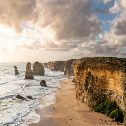 In afara golfului Apollo, drumul trece prin centrul parcului national Great Otway, cu padurile sale tropicale frumoase, inainte de a se intoarce pentru a imbratisa coasta pe intreaga lungime a Parcului National Port Campbell. Aceasta este cea mai faimoasa sectiune a Marelui Drum Oceanic, cu o colectie uimitoare de formatiuni de roca cunoscuta sub numele de 12 Apostoli, care au fost sculptate din colina de valurile aprinse ale Oceanului de Sud.