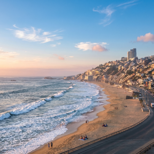 Vizitam apoi celebra statiune Vina del Mar, cu Casino Beach,locul in care multi chilieni aleg sa-si petreaca vacantele sau sa-si construiasca si case de vacanta, unde evadeaza din zonele aglomerate din Santiago de Chile. Putem sa facem si baie in Oceanul Pacific sau sa ne delectam cu preparate locale delicioase pe baza de fructe de mare.