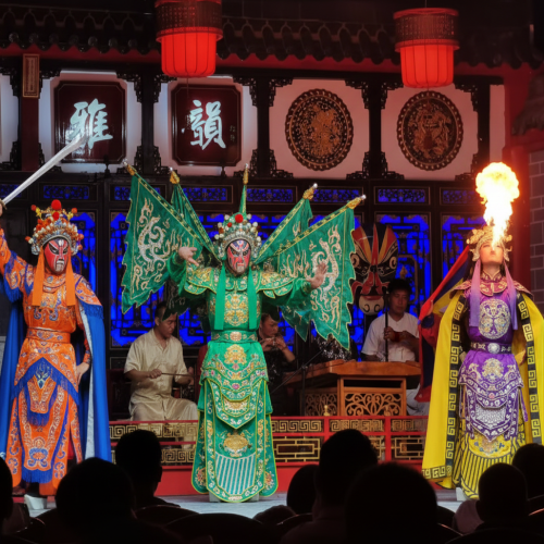 Opțional, puteți opta pentru un tur experiențial de jumătate de zi, dedicat simbolurilor culturale locale. În cadrul acestei activități, vom asista la un spectacol fascinant de Face-changing, un număr unic al Operei din Sichuan, și ne vom încerca îndemânarea la pictura măștilor faciale, o experiență creativă și interactivă. Vom completa atmosfera autentică savurând un ceai tradițional, simțind astfel pe deplin filozofia vieții „lente” din Chengdu, urmat de un prânz delicios la un restaurant local.