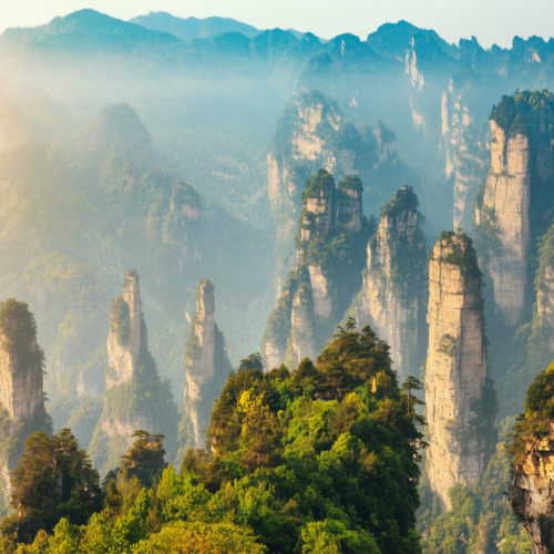 Traseul continuă spre Zhangjiajie, una dintre cele mai impresionante regiuni naturale ale Chinei, unde peisajele par desprinse dintr-un basm. Coloanele uriașe de cuarțit, ridicându-se dramatic din ceață, au devenit celebre la nivel mondial după ce au inspirat scenografiile filmului Avatar. Plimbările pe podurile suspendate, drumețiile printre vârfurile stâncoase și vizitele la punctele panoramice spectaculoase oferă senzația unei lumi aproape ireale.