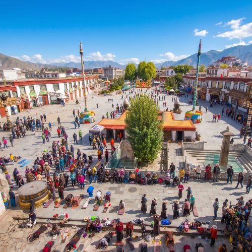 Zona păstrează un farmec urban tradițional intact, cu case tibetane cu fațade imaculate, ferestre decorate cu motive viu colorate și nenumărate prăvălii locale. Este locul ideal pentru a descoperi artizanatul autentic, de la mătănii budiste și roți de rugăciune, până la bijuterii din turcoaz și ceaiuri tibetane. Plimbarea pe străduțele pavate ale Barkhor-ului vă va oferi o privire autentică asupra vieții de zi cu zi în Lhasa, fiind o experiență care definește esența culturii tibetane.