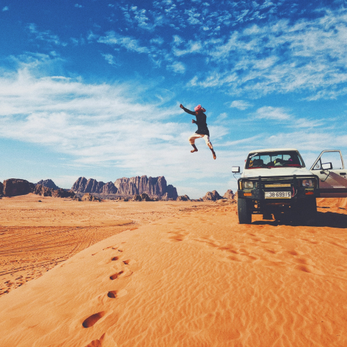 Pentru beduinii care locuiesc aici, fiecare zi este o provocare, insa pentru vizitatori explorarea desertului este usoara si distractiva, avand oportunitatea de a vedea cele mai uimitoare locuri din zona intr-un Jeep Safari 4x4: veti putea admira cei Sapte Stalpi ai Intelepciunii si formatiuni de roca uimitoare, dintre care unele poarta inscriptii antice, fiind adevarate opere de arta.