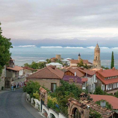 Traseul continuă către Sighnaghi, supranumit „Orașul Iubirii”, un mic orășel romantic, renumit pentru arhitectura sa colorată și pentru zidurile sale medievale ce se întind pe kilometri, cu 23 de turnuri de apărare. Situat pe un promontoriu ce domină pitoreasca vale Alazani, regiunea viticolă cea mai faimoasă din Georgia, Sighnaghi era odinioară o răscruce importantă pe Drumul Mătăsii. Străzile sale pietruite, casele cochete și priveliștile spectaculoase creează o atmosferă de basm.