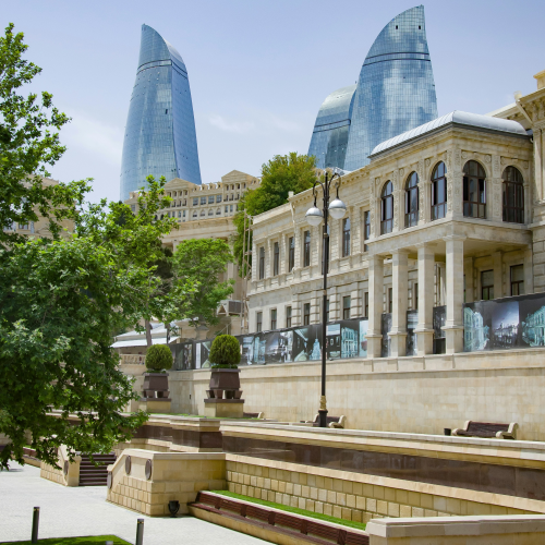 Baku, capitala Azerbaidjanului, este un oraș spectaculos situat pe malul Mării Caspice, unde modernul și tradiționalul se împletesc armonios. Zgârie-norii futuristi și clădirile moderne contrastează cu cartierele istorice, cu străzi pietruite, bazare vibrante și moschei vechi, oferind o privire captivantă asupra trecutului și prezentului orașului.